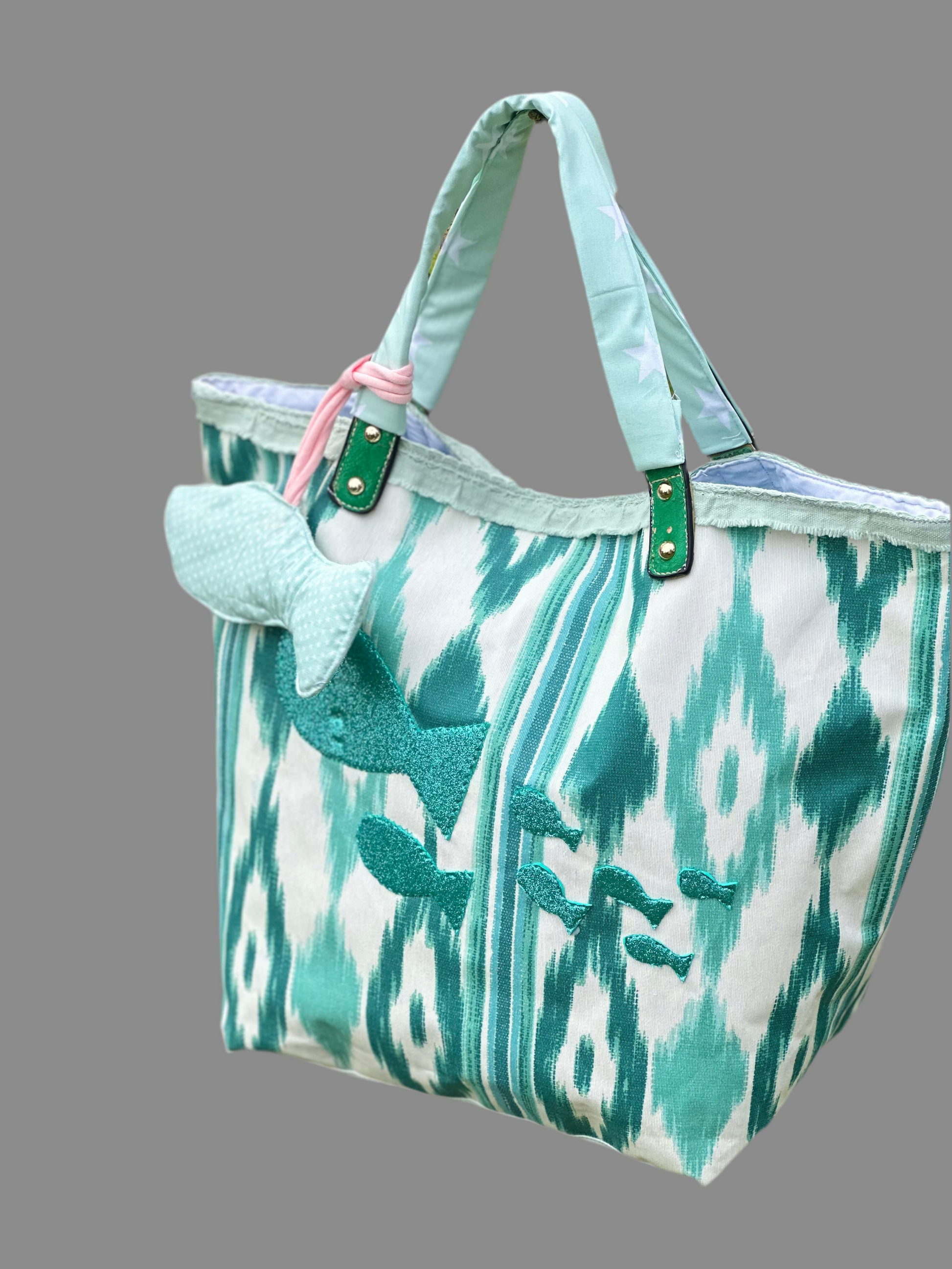 Diese geräumige Tasche ist dein perfekter Allrounder. Mit ihren großzügigen Maßen von ca. 30 cm Breite, 20 cm Tief und 50 cm Höhe bietet sie mehr als genug Platz für alles, was du unterwegs brauchst – sei es für einen entspannten Tag am Strand, den Wochenmarkt-Einkauf oder deine täglichen Erledigungen. Dank der robusten, langen Henkel lässt sie sich bequem über der Schulter tragen.