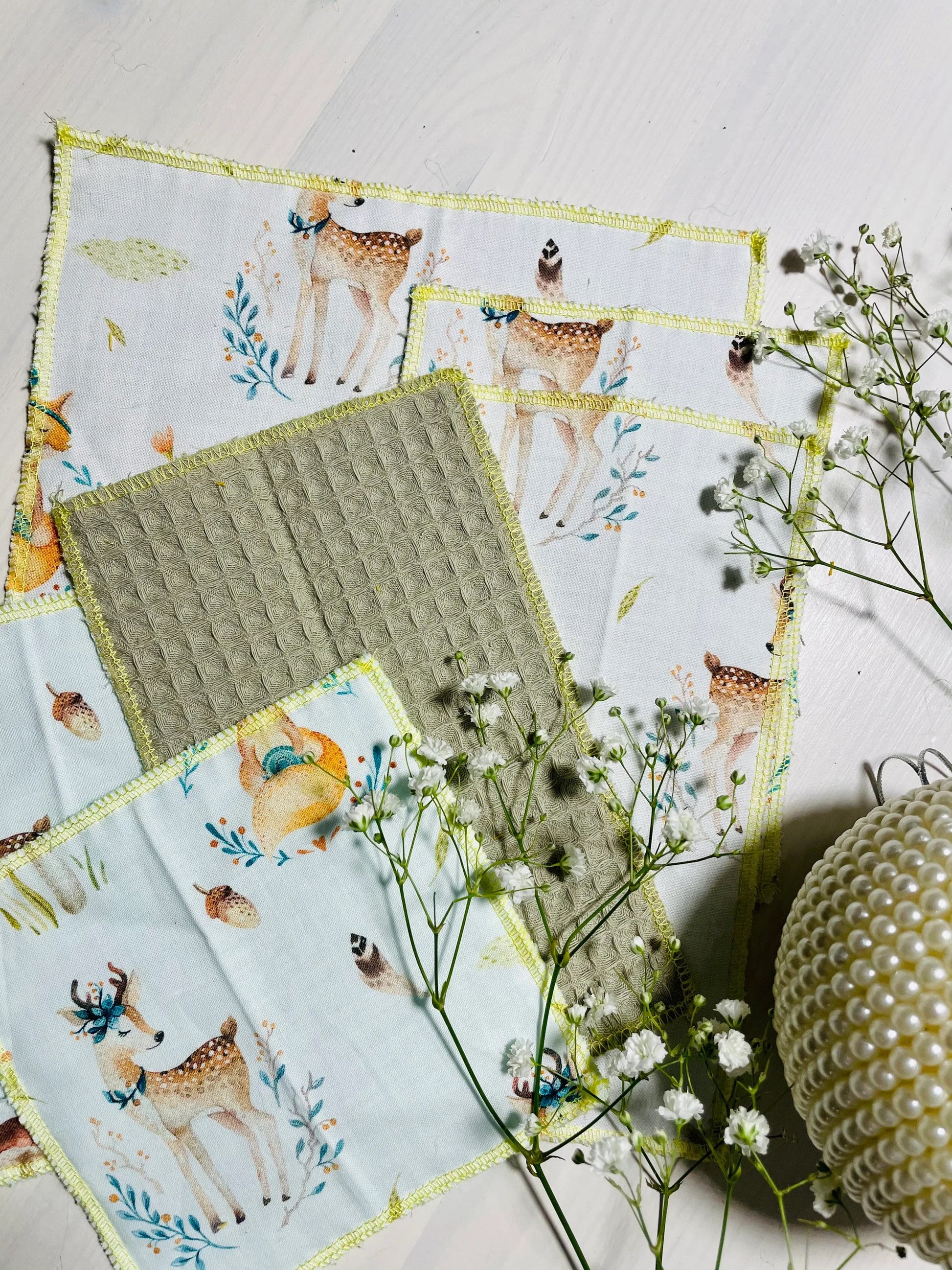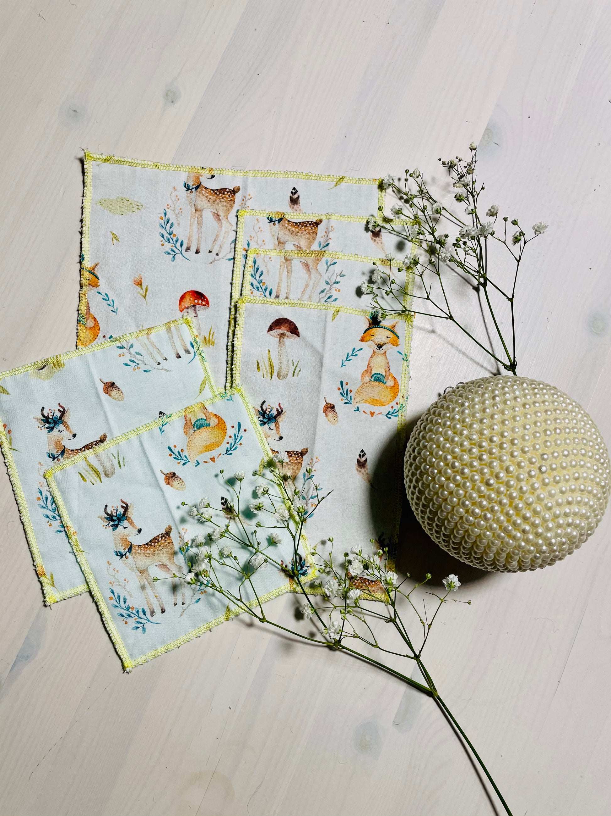 Dieses wunderschöne Set besteht aus 6 Teilen. Die verschiedenen Größen eignen sich als Waschlappen/Spüllappen oder Feuchttücher. Die kleineren Teilchen eignen sich als Kosmetikpads. Ob zuhause oder unterwegs. Die selbst hergestellten Läppchen sind Nachhaltig und schonen unsere Umwelt.