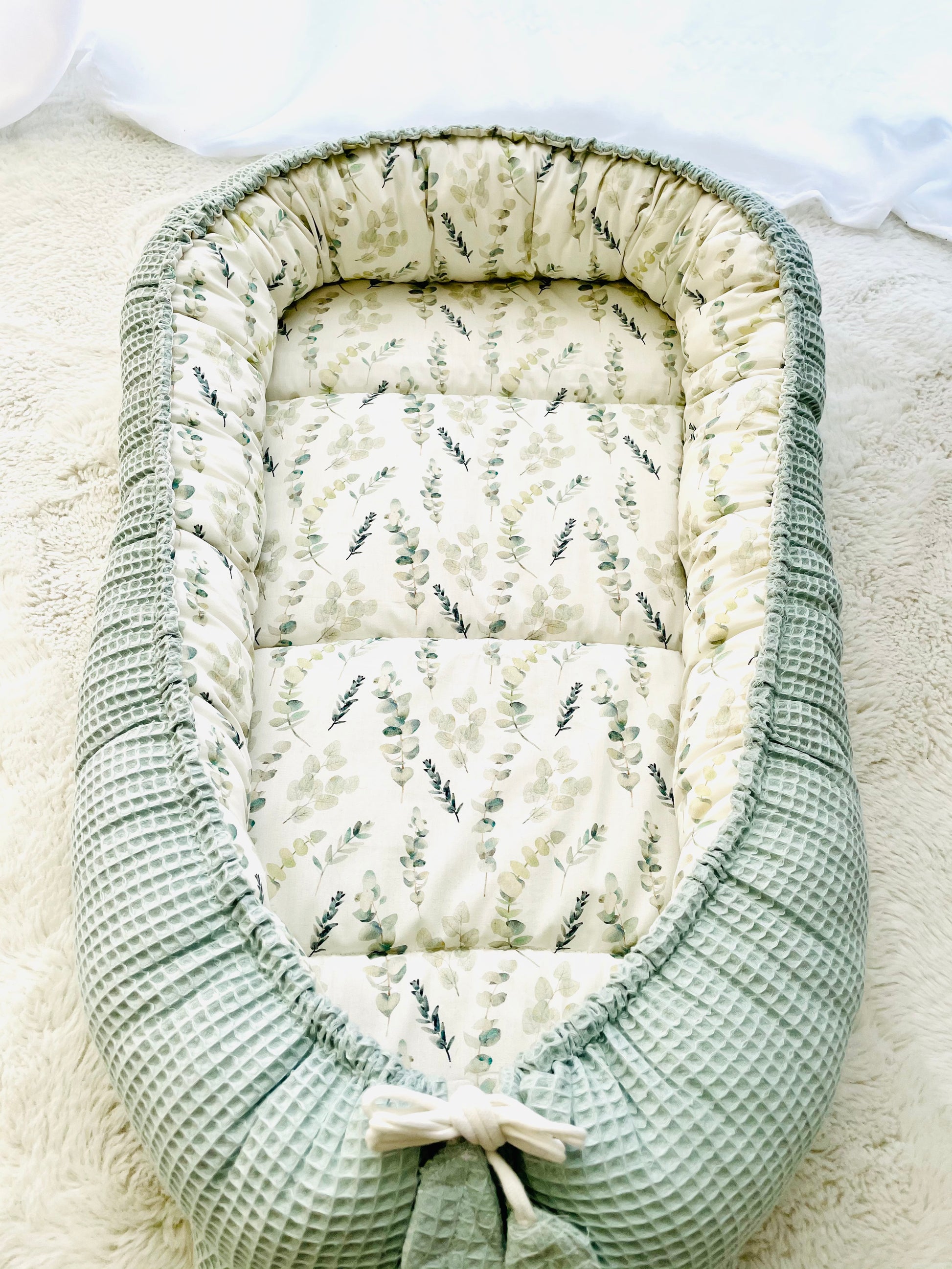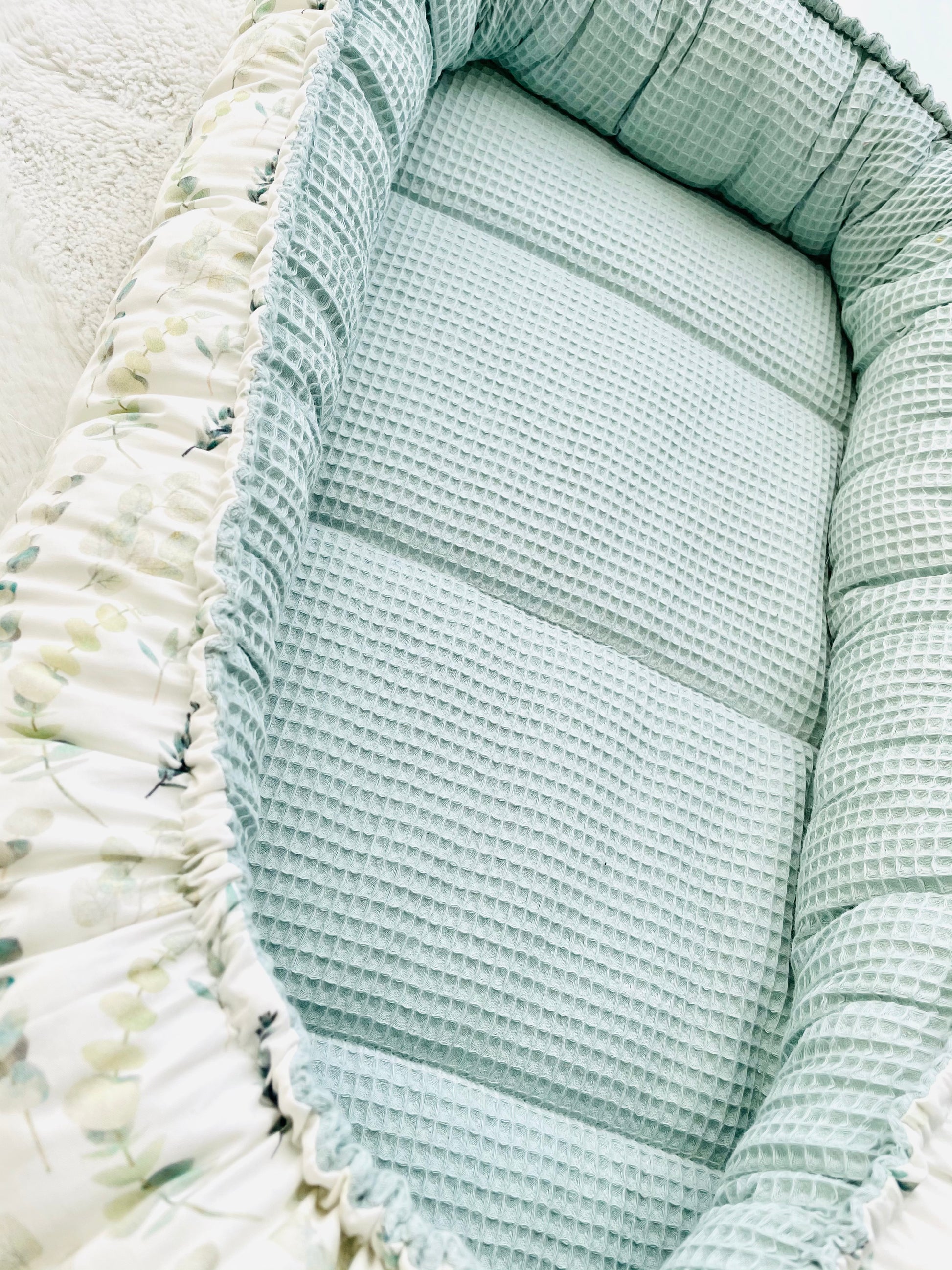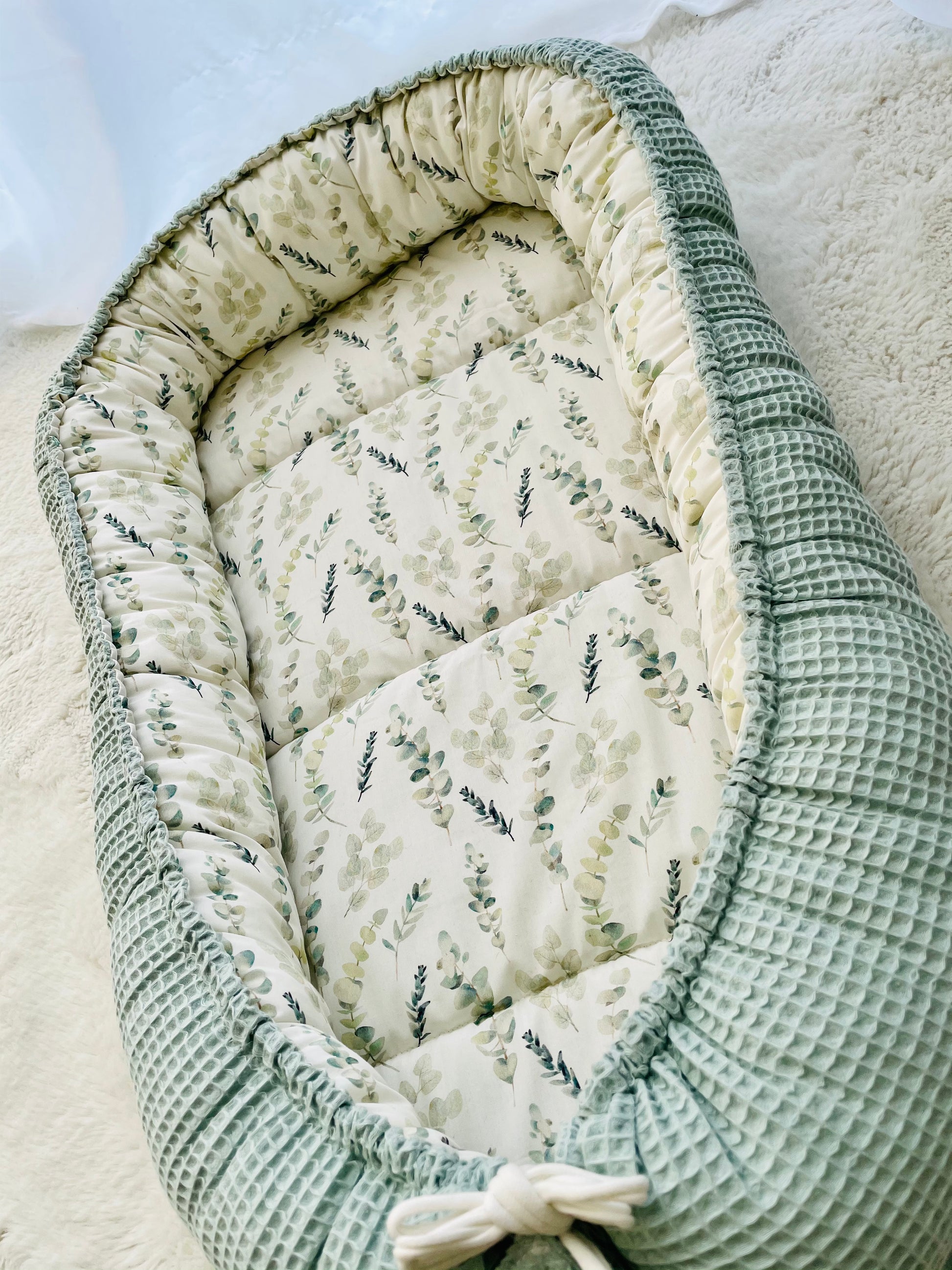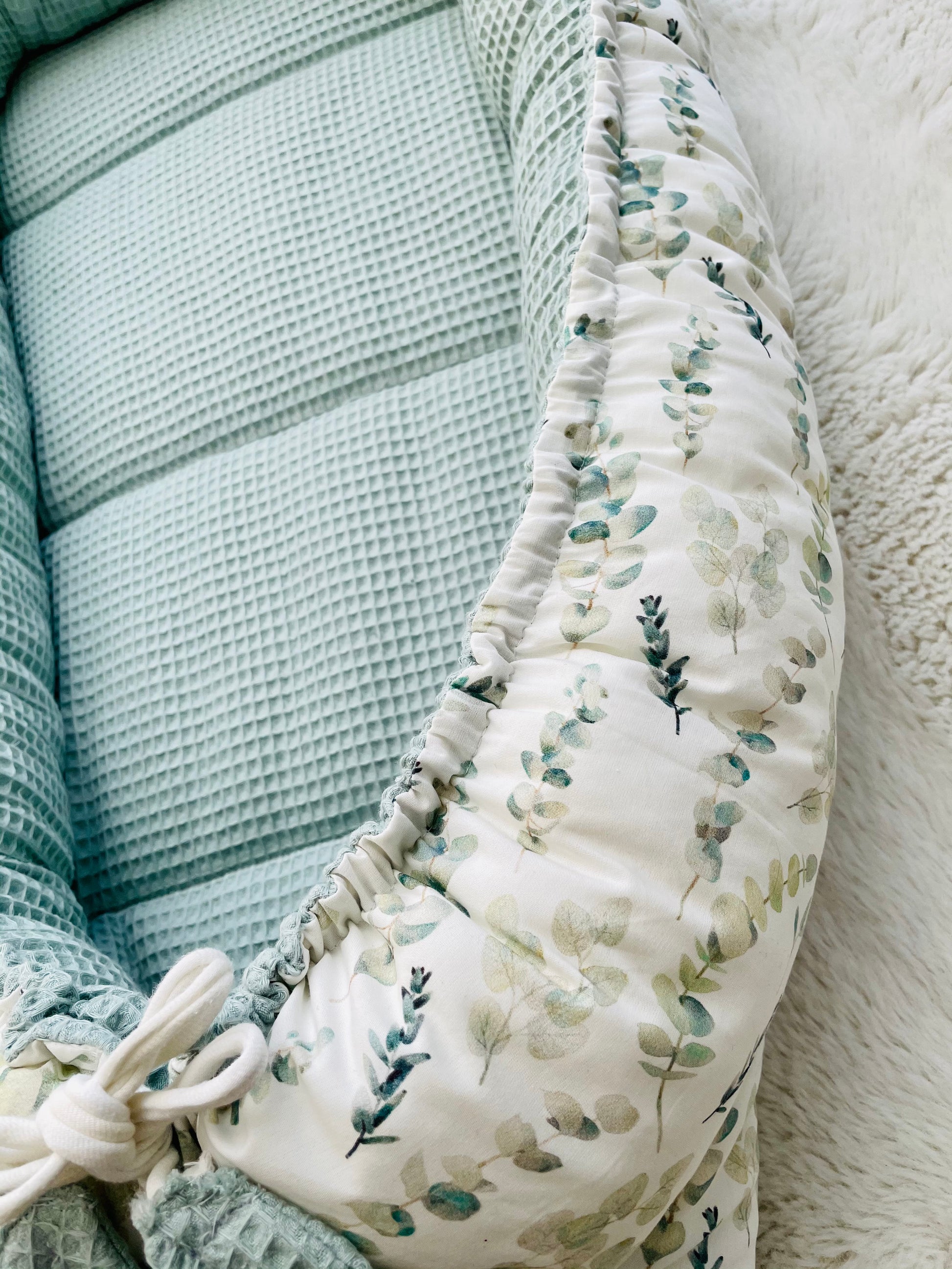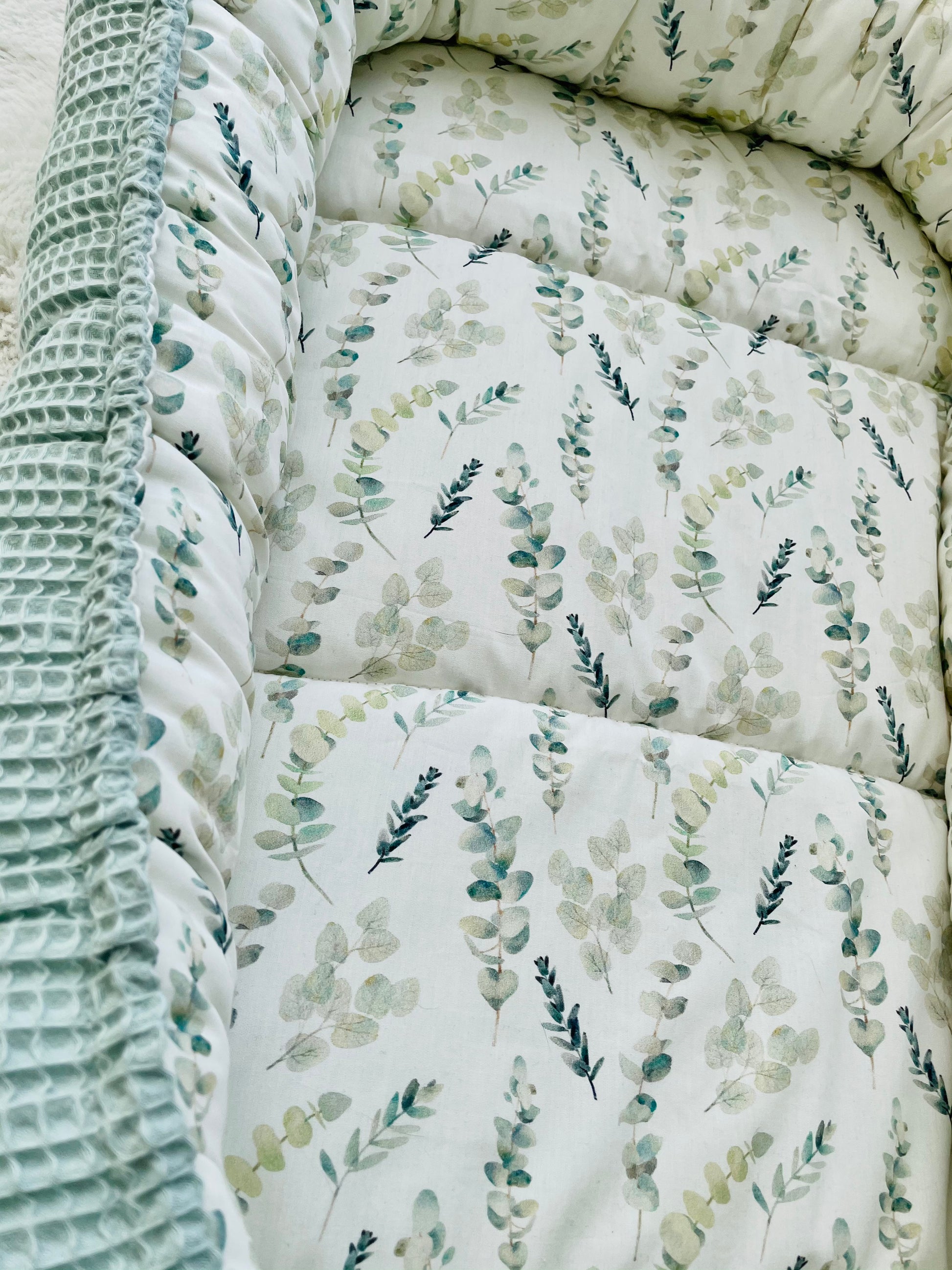 Spielmatte, Spielunterlage oder Wickelauflage aus Waffelpiquet Muster Eukalyptus