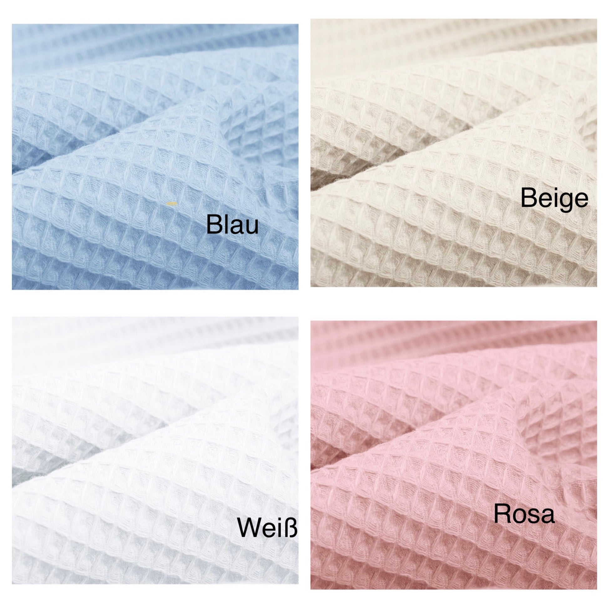 Die Unterlage ist mit einem Jerseyband zum zuziehen versehen. Das Band ist mit einer süßen Applikation am Ende versehen. Die Liegefläche ist nochmal abgesteppt. Dies gewährleistet kein Verrutschen der Einlage beim waschen oder knäulen. Die Unterlage kann bei 30 Grad in der Maschine unter Feinwäsche gewaschen werden.