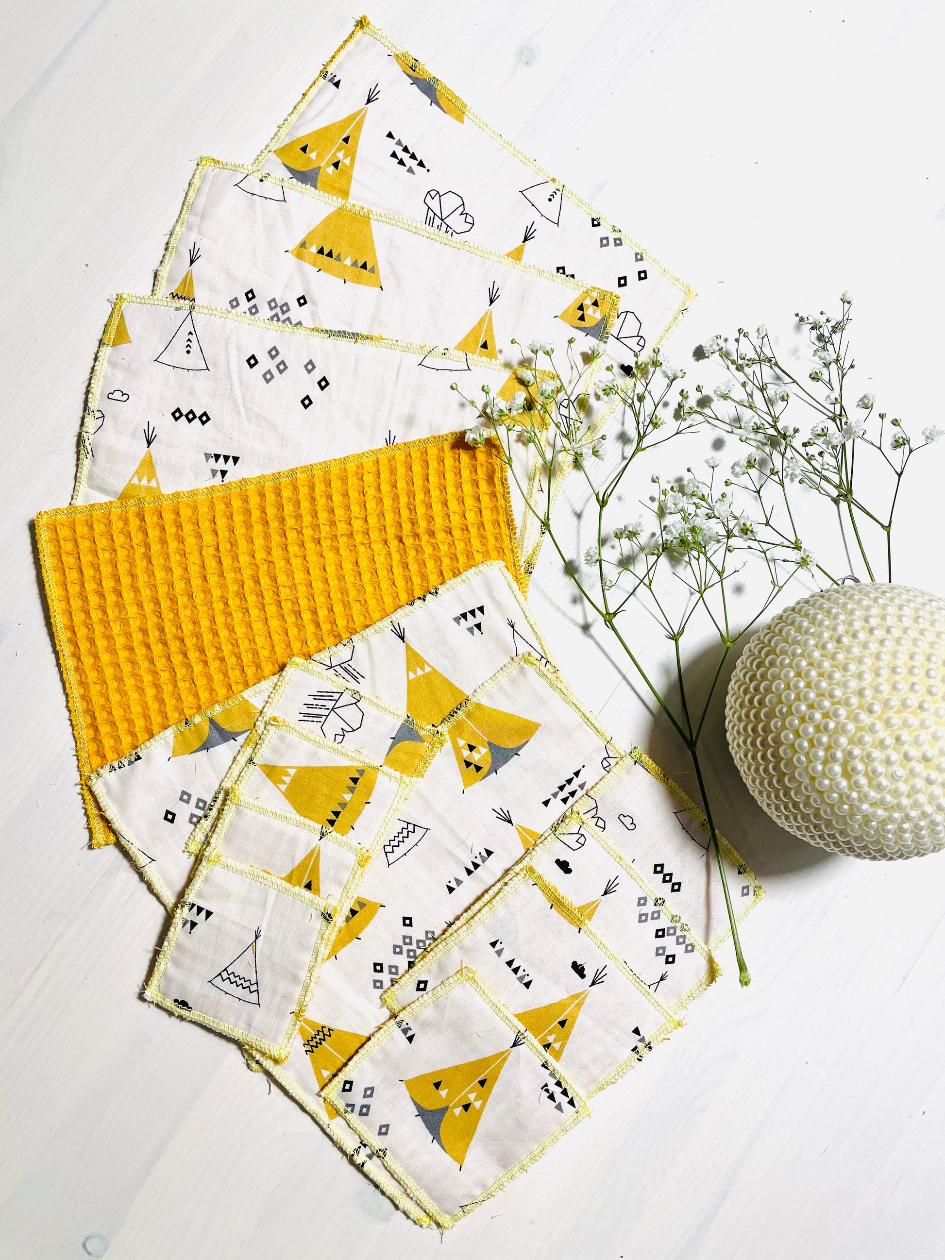 Dieses wunderschöne Set besteht aus 14 Teilen. Die verschiedenen Größen eignen sich als Waschlappen/Spüllappen oder Feuchttücher. Die kleineren Teilchen eignen sich als Kosmetikpads. Ob zuhause oder unterwegs. Die selbst hergestellten Läppchen sind Nachhaltig und schonen unsere Umwelt.